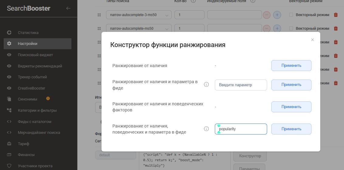 Как настроить ранжирование в личном кабинете SearchBooster