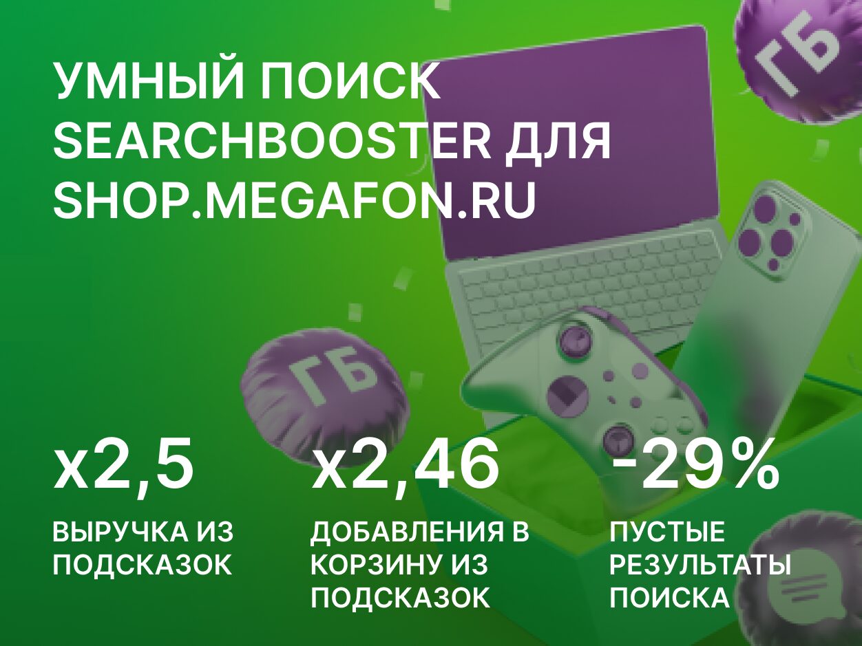 Умный поиск SearchBooster для shop.megafon.ru — рост выручки подсказок в 2,52 раза